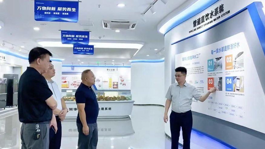 白冰董事長一行認真聽取講解,還就榮事達管道直飲水項目的設備性能、技術(shù)原理等細節(jié)與陪同人員深入交流。榮事達管道直飲水項目是針對社區(qū)、學校、醫(yī)院、企事業(yè)單位及工廠等場景,提供定制化飲水模式,涵蓋社區(qū)智慧水站、校園智慧凈水屋、高端直飲水設備及變頻供回水系統(tǒng),旨在為民眾打造便捷、高端、健康的飲水服務。