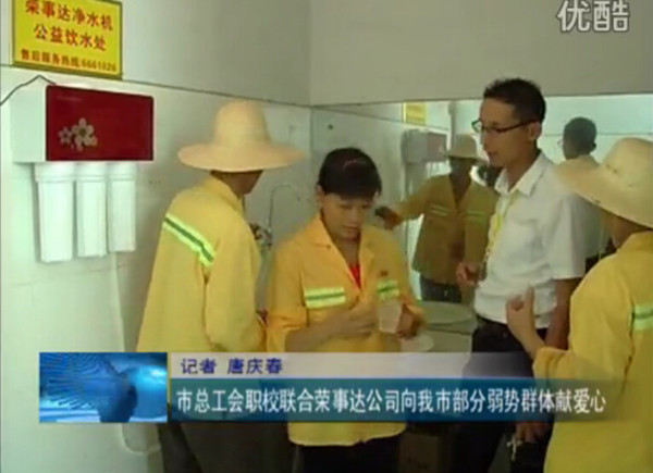 7月12日,榮事達水工業公司聯合棗陽市總工會職校開展捐贈凈水機等愛心活動,受到當地群眾一致好評與媒體高度關注,棗陽綜合頻道、經視頻道、都市頻道等多家媒體對活動進行了報道。