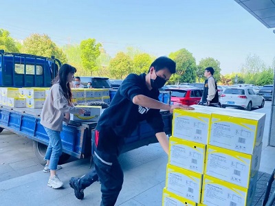 4月8日榮事達水工業集團工作人員以最快的速度進行物資的裝載,滿載著抗疫物資,發往37℃的愛活動統籌處。